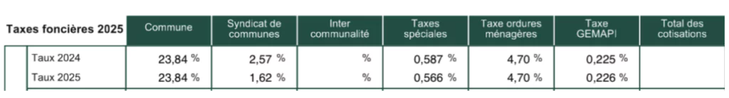 La colonne « taxes spéciales » des avis de taxe foncière peut recouper plusieurs taxes :