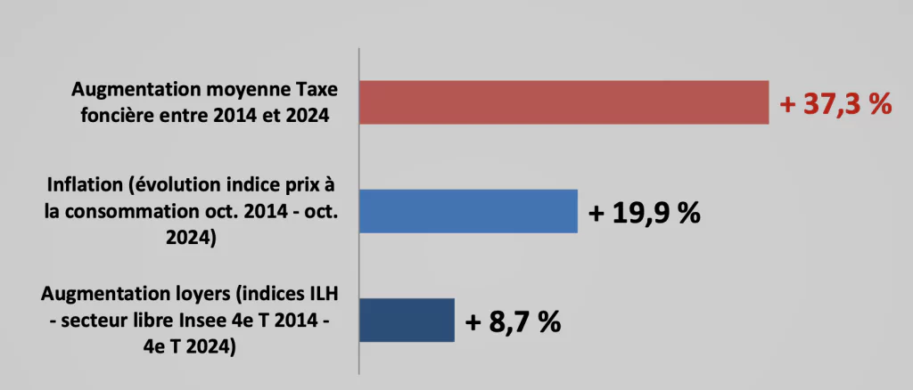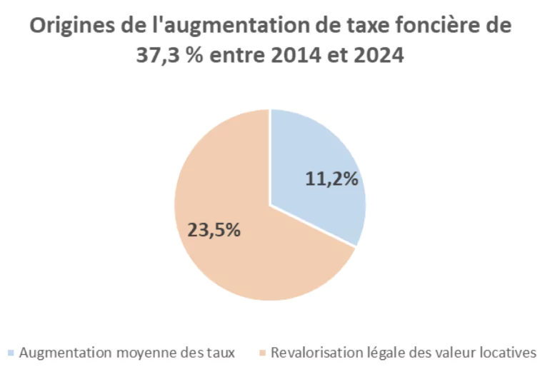 propriétaires ont vu leur impôt bondir de 16,7 %. - Entre 2014 et 2024, à taux de taxe foncière constants, les propriétaires ont vu leur